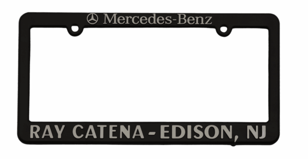 A budget-friendly alternative, this black plastic option offers a simple, understated look without the reflective shine and remains a practical choice for dealerships seeking a cost-effective branding solution.